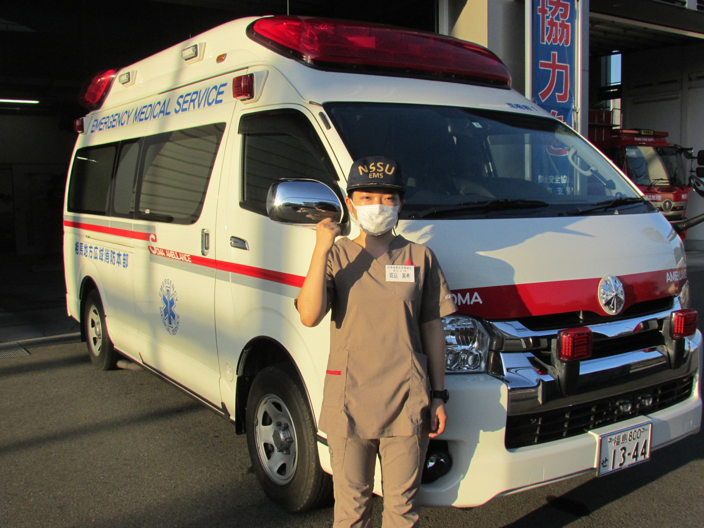 この実習は、救急救命士法で定められた救急救命士国家資格取得のために必要不可欠な実習であり、今回当消防本部で実習を行ったのは、日本体育大学 保健医療学部救急医療学科3年の堀込実希さん(南相馬市出身)です。