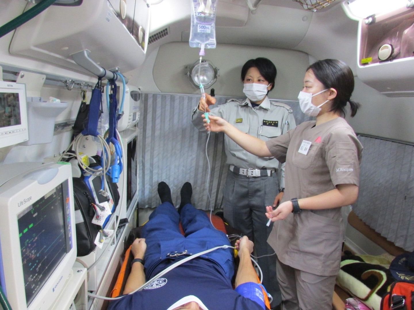 堀込さんは、実習期間中5件の救急事案において、救急車に同乗し、実際の現場での救急活動について学んでいただきました。