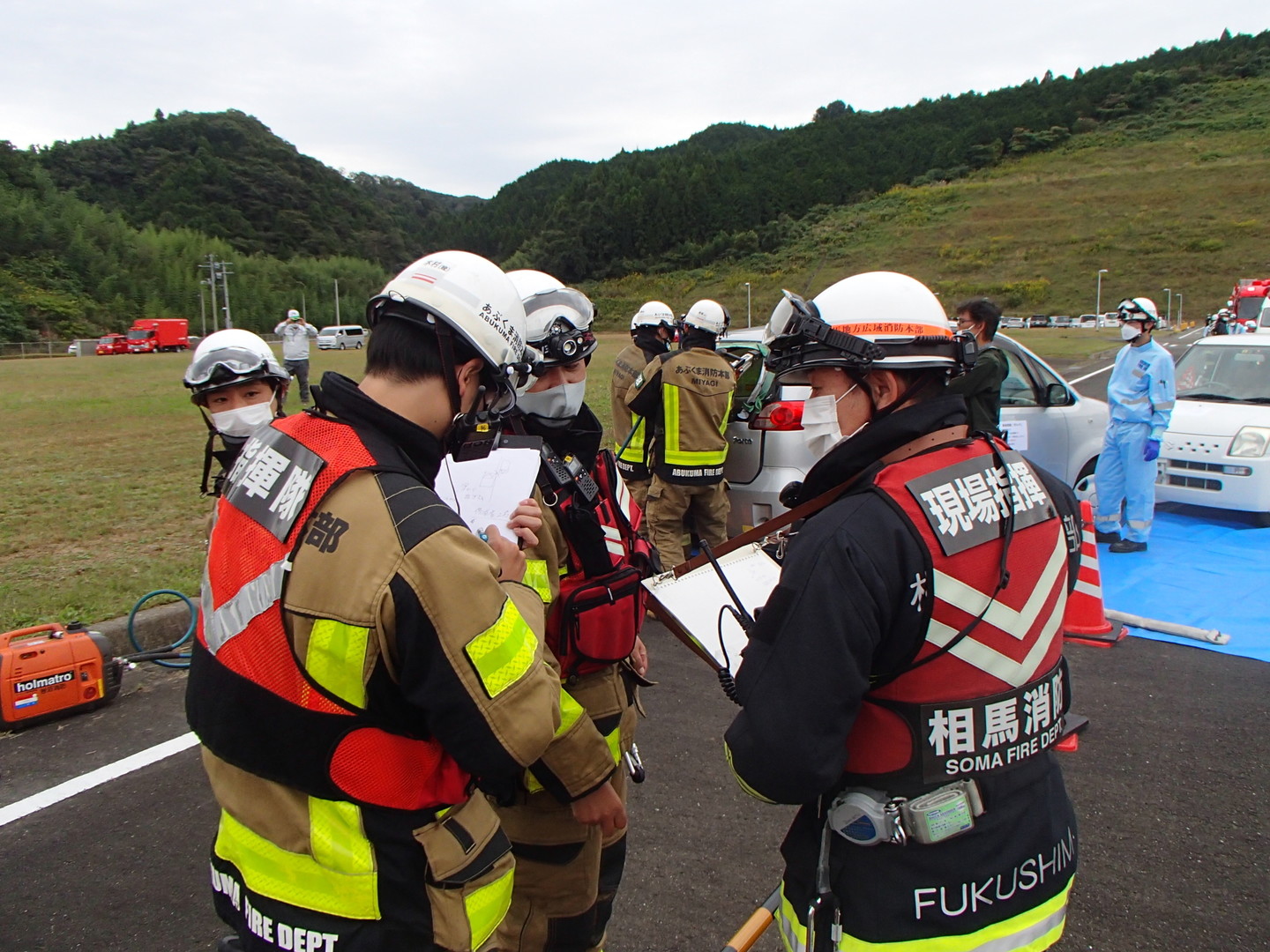 相馬消防本部では10月12日(水)、13日(木)の2日間、宮城県亘理郡山元町であぶくま消防本部と常磐自動車道事故対応合同訓練を実施しました。