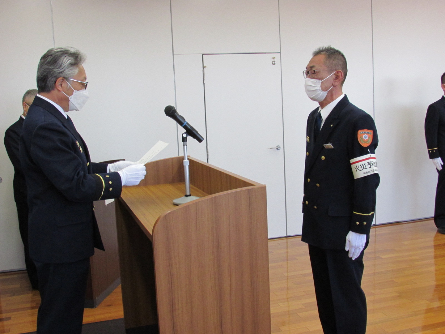 管理者から消防長へ交付 消防長から南相馬消防署長へ配車