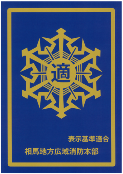表示マークの交付を受けるためには、上記に示した表示対象のホテル・旅館等の管理権原者が、「表示マーク交付(更新)申請書」に申請に必要な下記の書類を添付し管轄の消防署所に申請し、消防機関の審査の結果、表示基準に適合していることが認められた場合に下記の表示マークが交付されます。