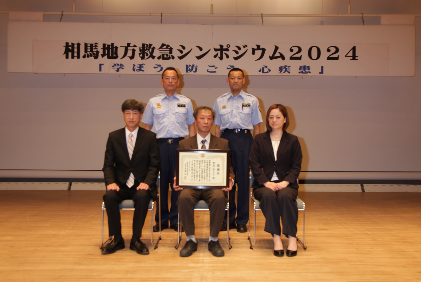 今年度は相馬市で創業されております、㈱技研エントランス様に対して「救急救護に関しての功績」として消防長表彰:感謝状を贈呈いたしました。